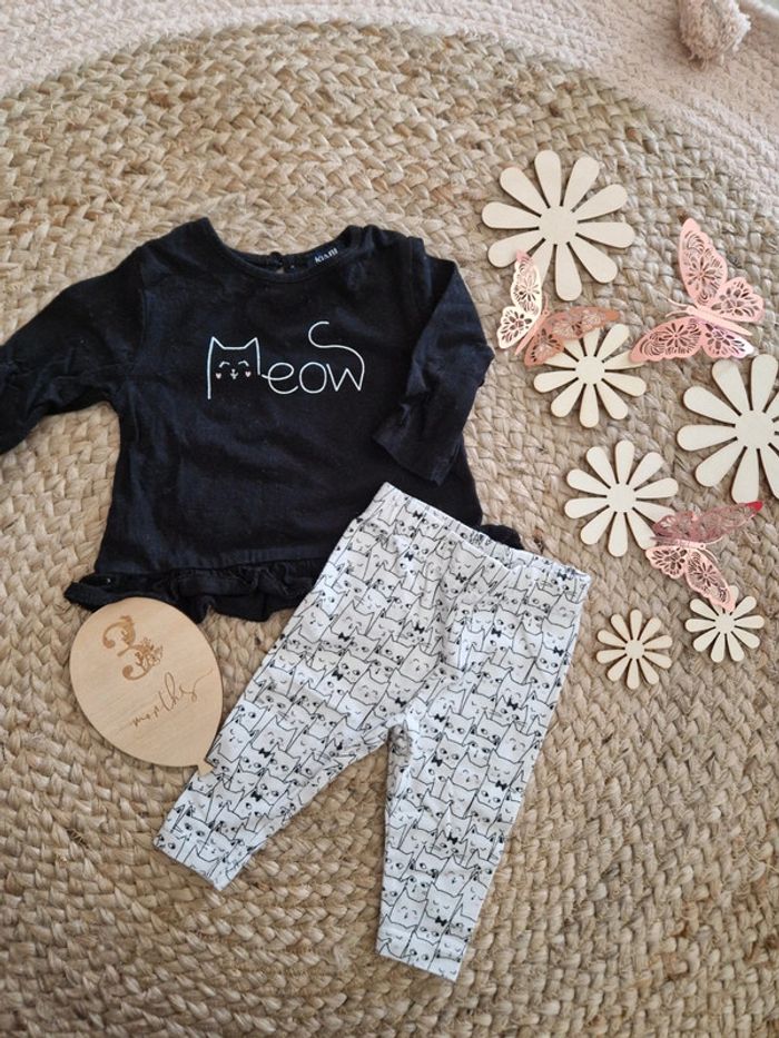 Ensemble chat noir et blanc kiabi bébé fille 3 mois
