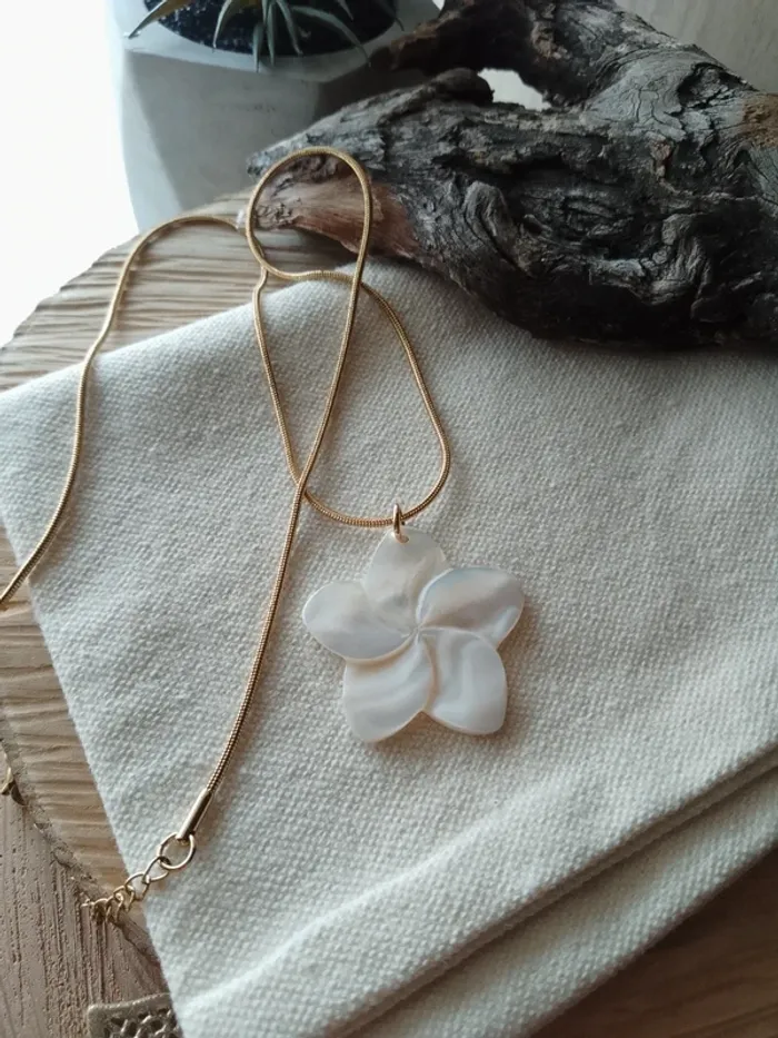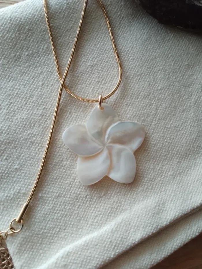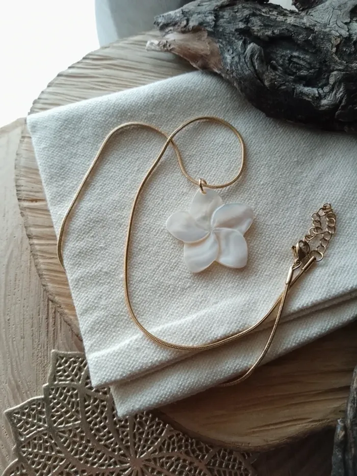 Collier bohème fleur de tiaré en nacre blanche - photo numéro 1