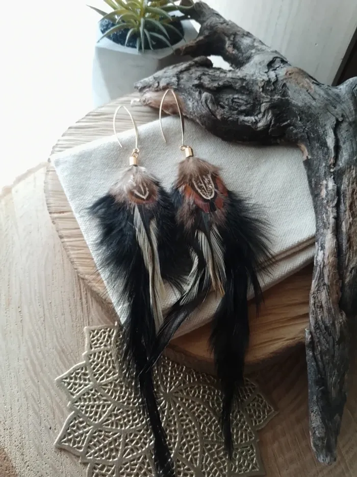 Boucles d'oreilles bohèmes plumes noires - photo numéro 1