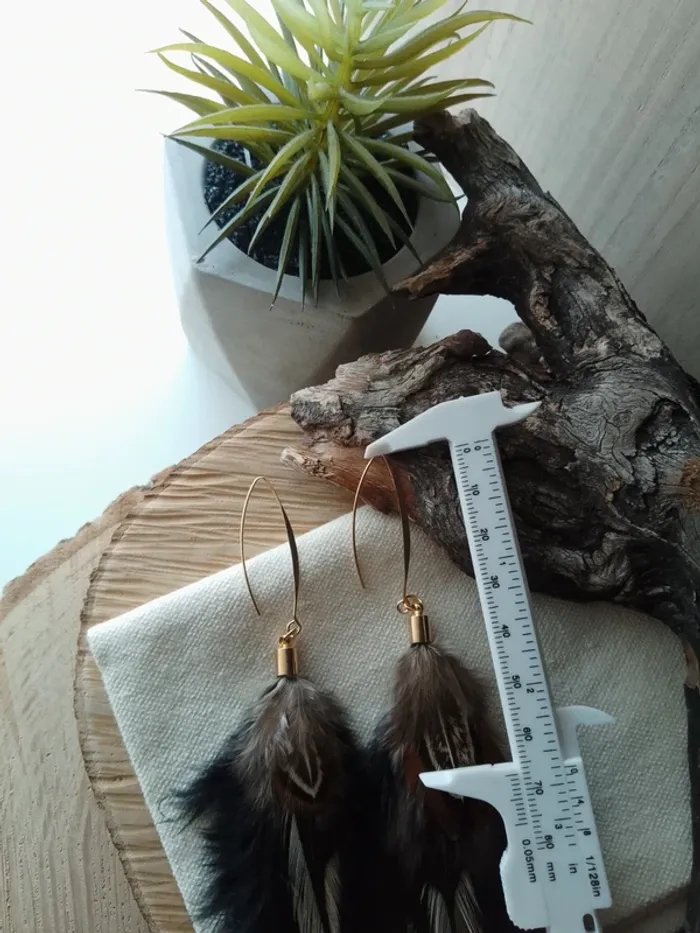 Boucles d'oreilles bohèmes plumes noires - photo numéro 3