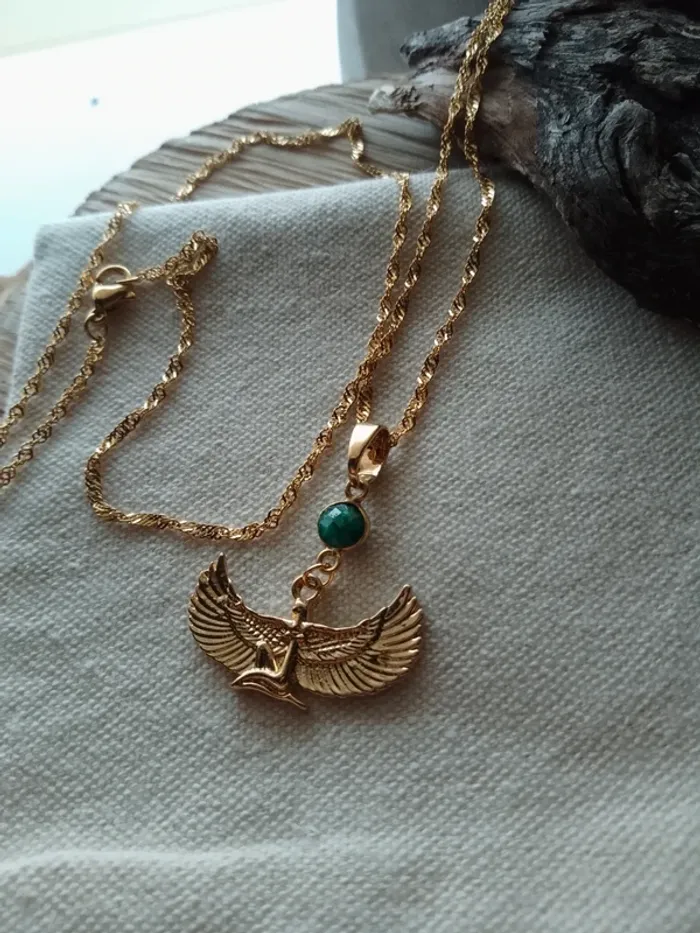 Collier déesse égyptienne avec connecteur en pierre d'émeraude brute - photo numéro 1