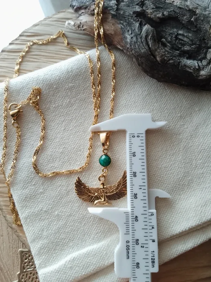 Collier déesse égyptienne avec connecteur en pierre d'émeraude brute - photo numéro 3