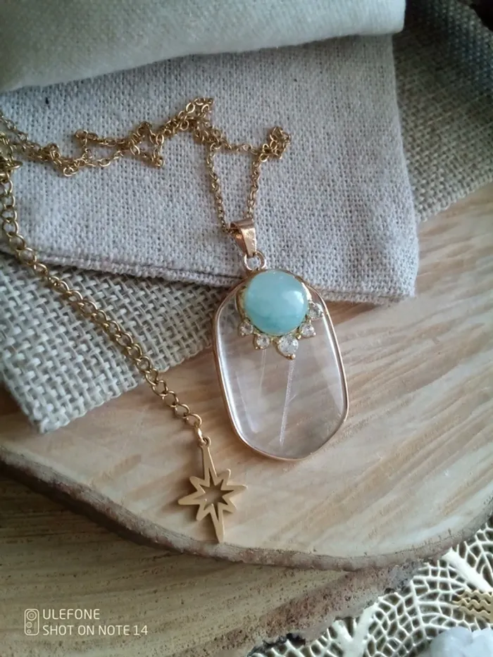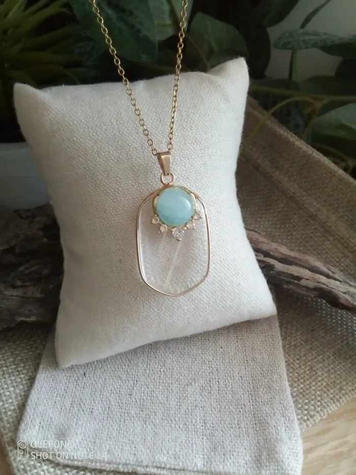 Collier cristal de quartz et amazonite - photo numéro 2