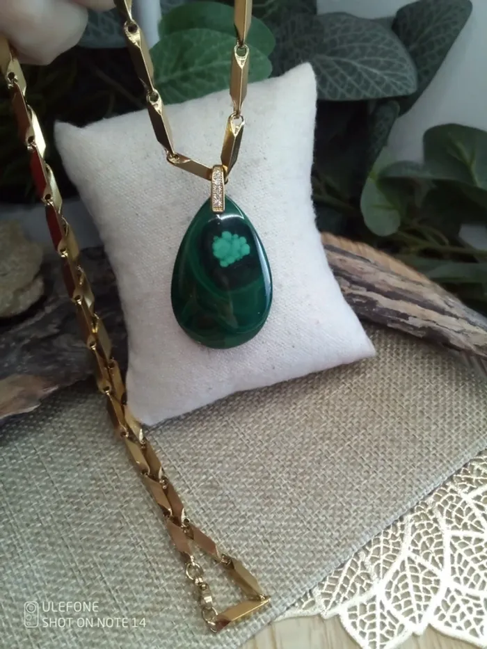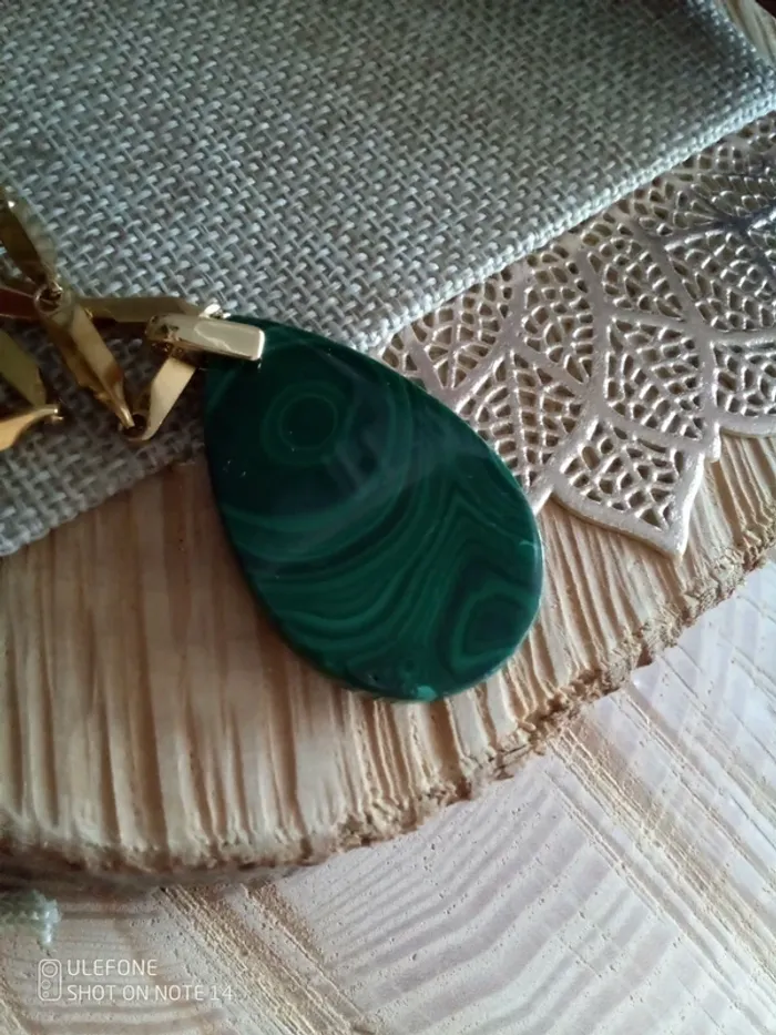 Collier pendentif Véritable pierre de malachite - photo numéro 1