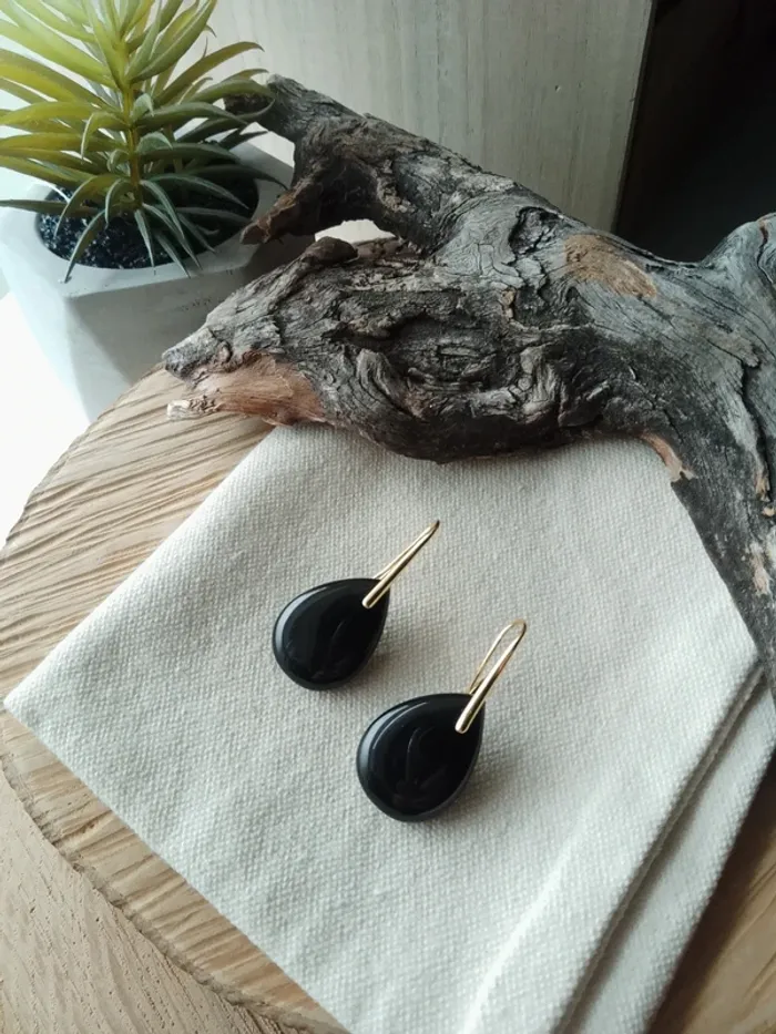 Boucles d'oreilles en pierres naturelles d'obsidienne - photo numéro 1