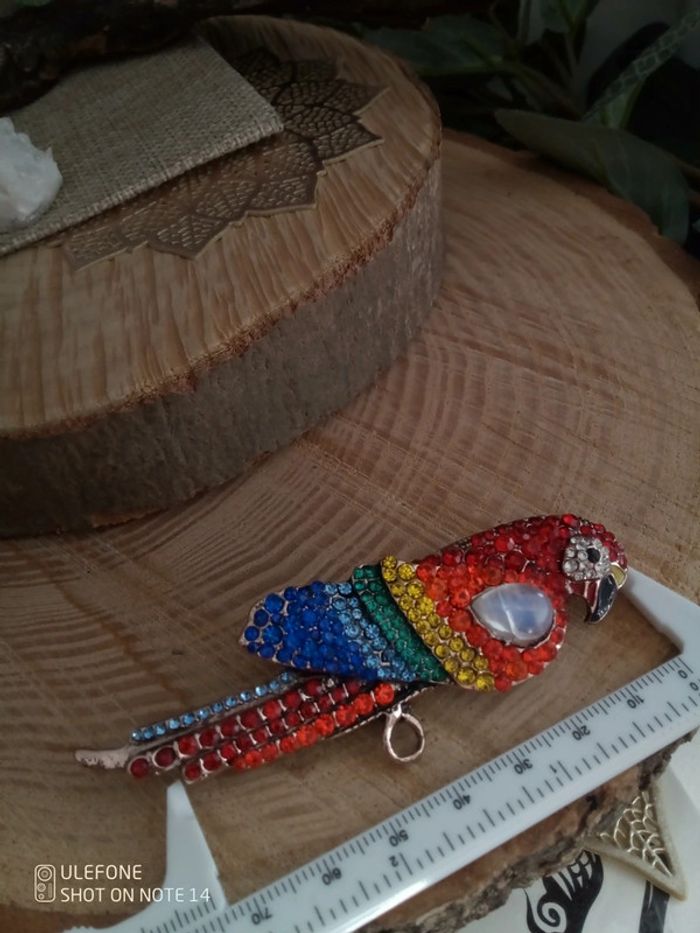 Broche perroquet exotique avec pierre de lune naturelle - photo numéro 2