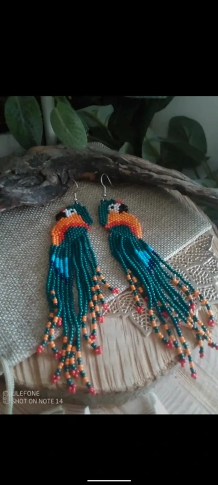 Boucles d'oreilles jolis perroquets perlés - photo numéro 1
