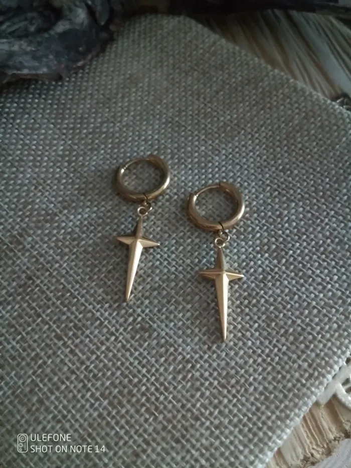 Créoles croix en acier inoxydable doré - photo numéro 1