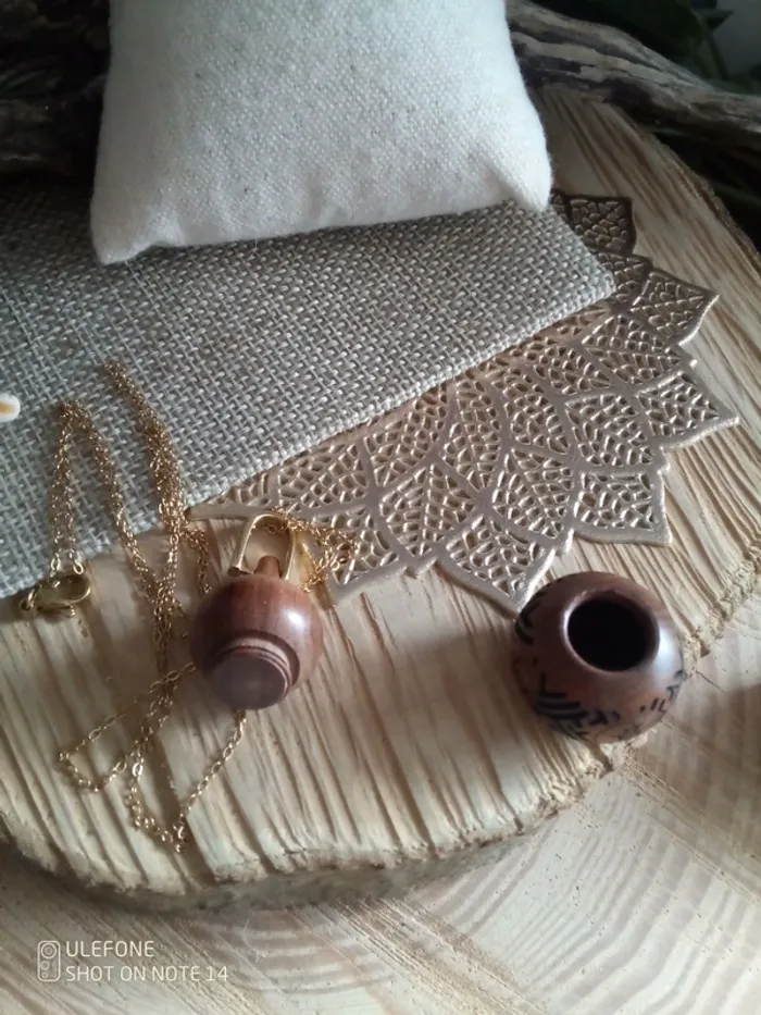 Collier pendentif porte bonheur urne en bous - photo numéro 1