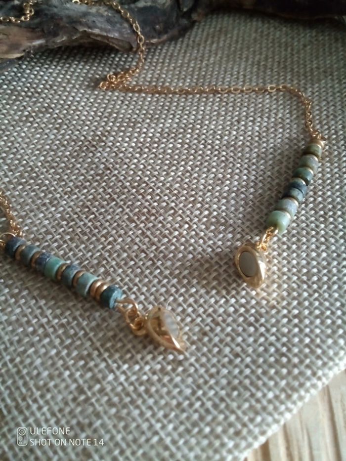 Collier pierres de turquoise africaine et acier inoxydable - photo numéro 2