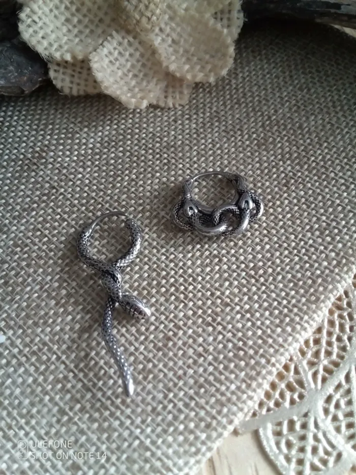 Boucles d'oreilles asymétriques serpents argentés