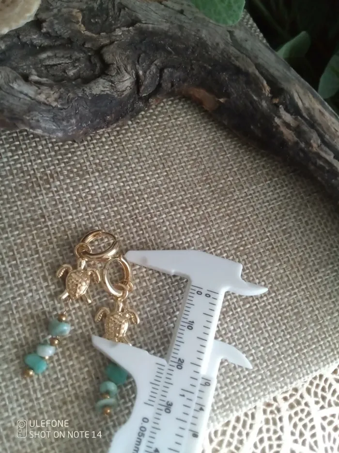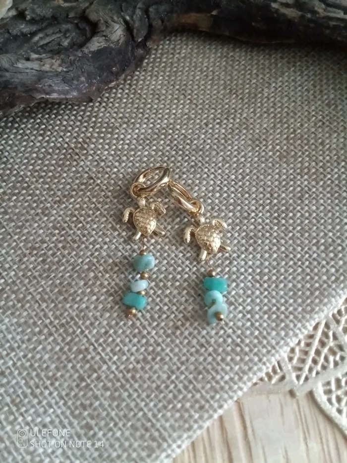 Boucles d'oreilles tortues et pierres d'amazonite - photo numéro 3