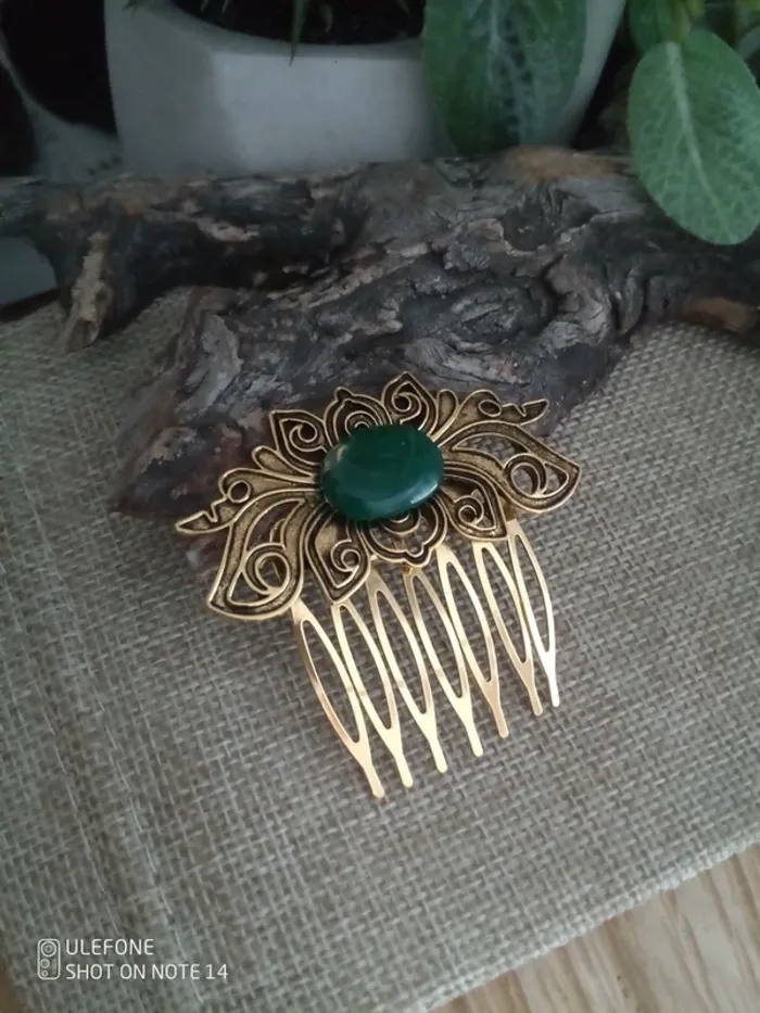 Barrette peigne pierre d'agate verte naturelle - photo numéro 1
