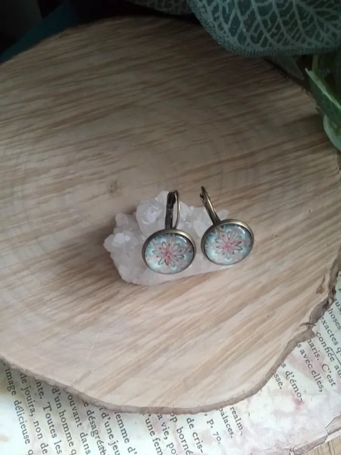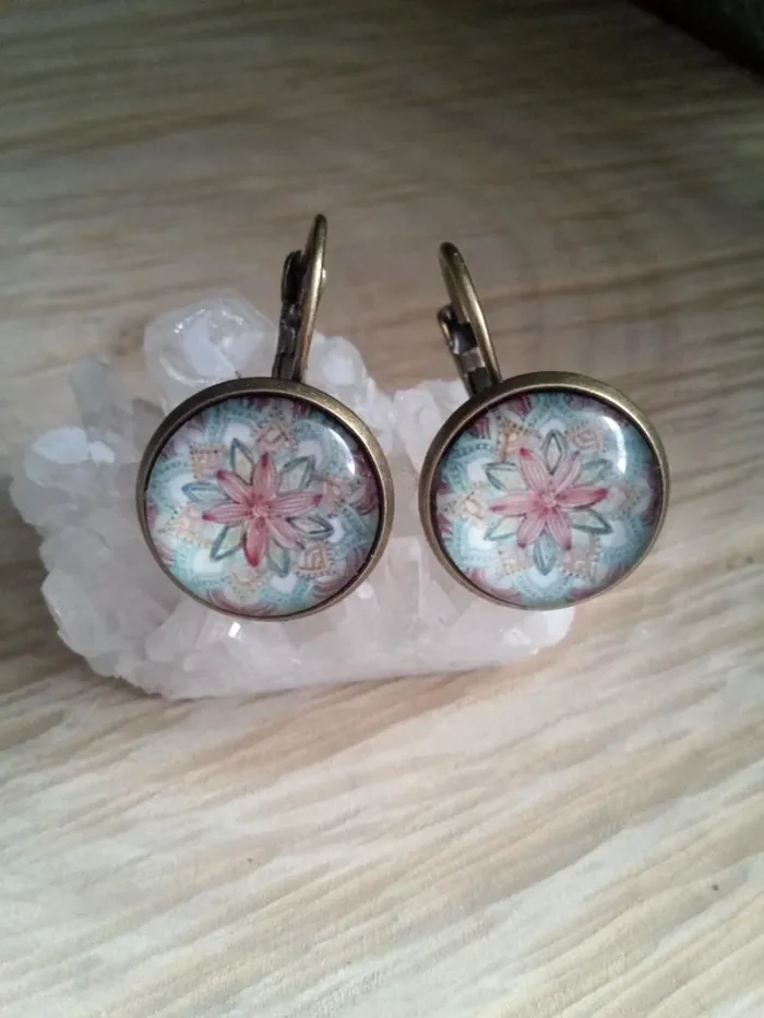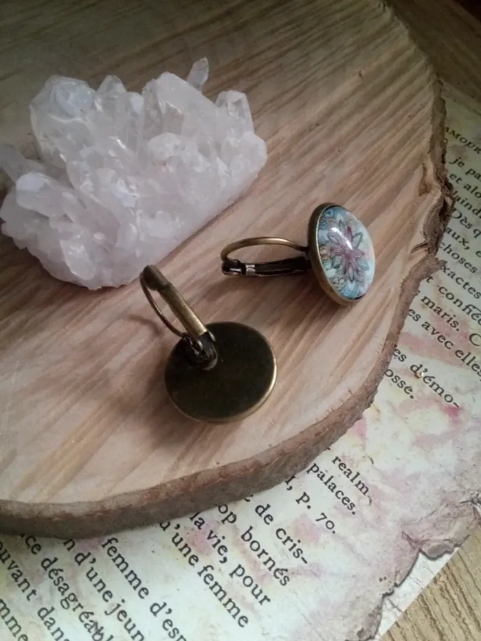 Boucles d'oreilles cabochons fleuris 3 cm Inoxydable Lithothérapie bola turban magie wicca ariol