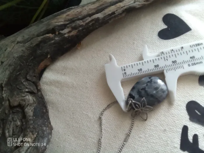 Collier pendentif pierre de labradorite et fleur argentée - photo numéro 2
