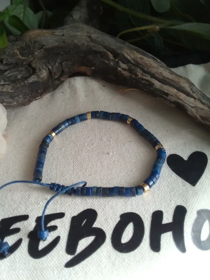 Bracelet réglable en pierres de lapis lazuli naturelles - photo numéro 1