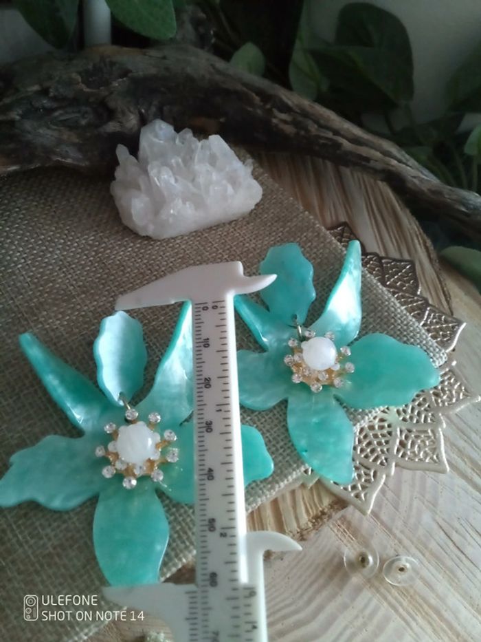 Boucles d'oreilles fleurs bleues pierres de lune - photo numéro 2