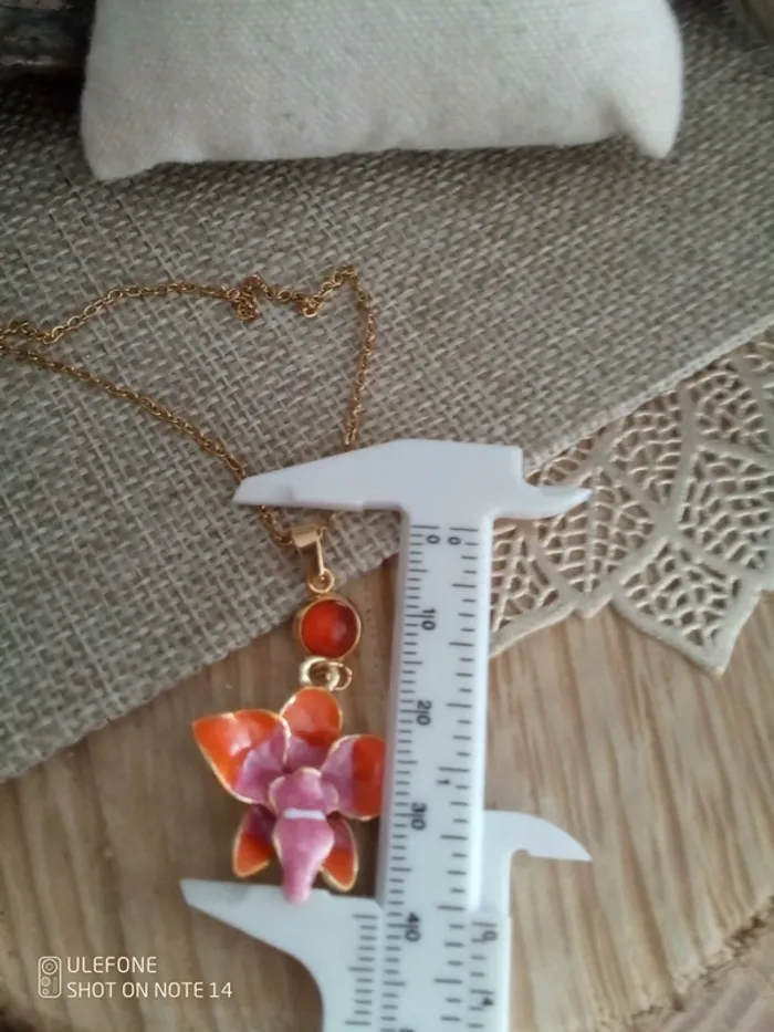 Collier fleur orchidée et pierre de cornaline - photo numéro 2