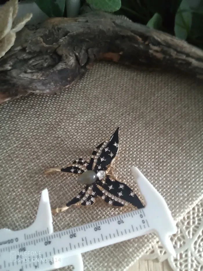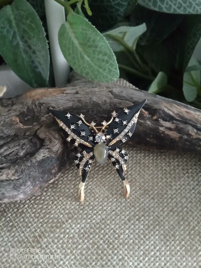 Broche papillon noir pierre de labradorite naturelle - photo numéro 1