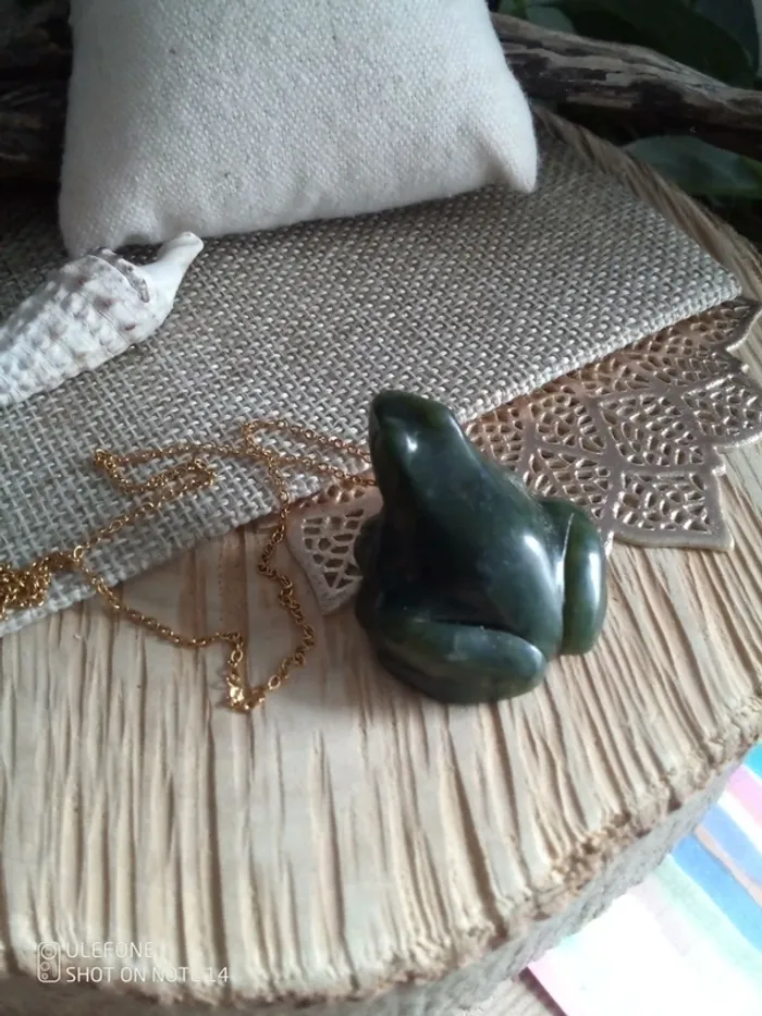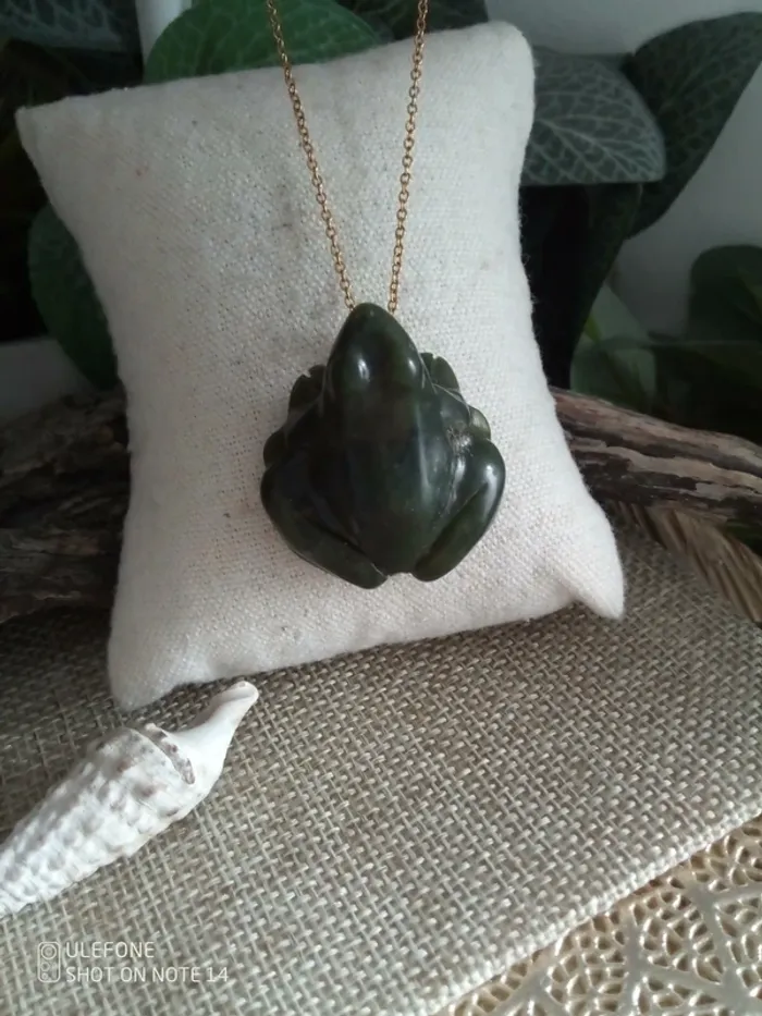 Collier grenouille en pierre naturelle de jade vert - photo numéro 1
