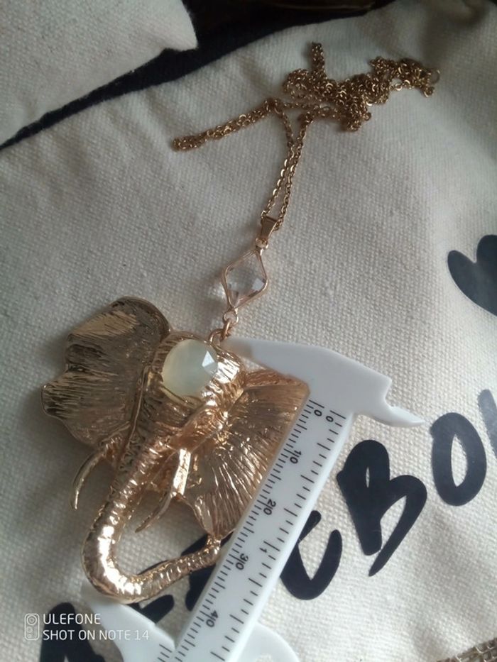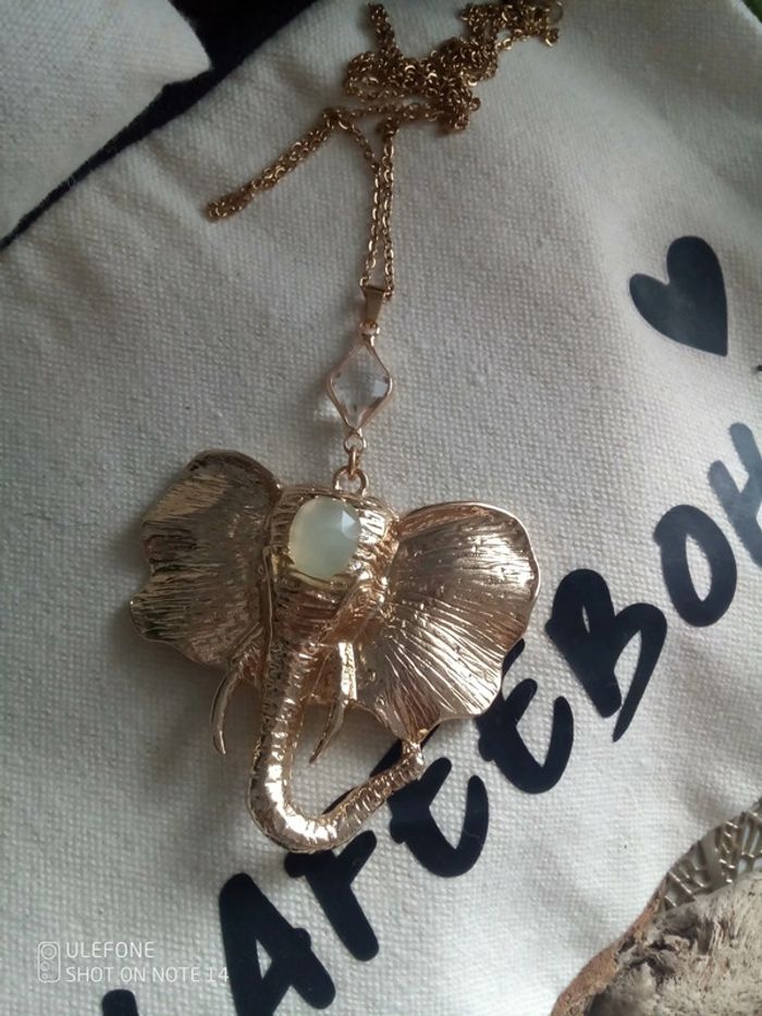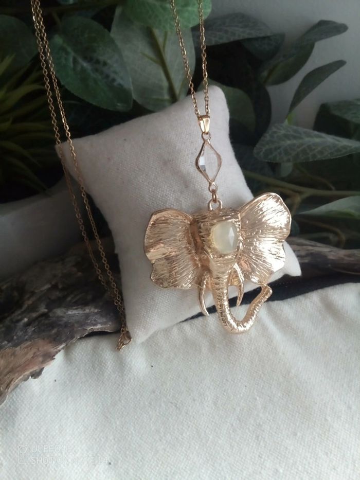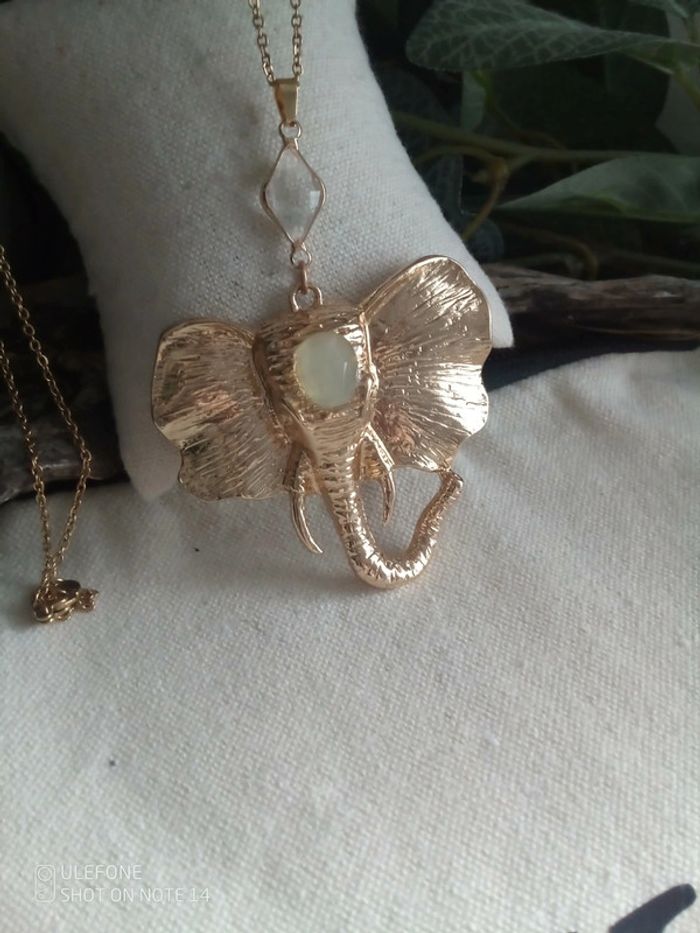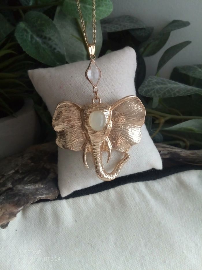 Collier Pendentif éléphant pierres d'aqua calcédoine et de cristal de quartz - photo numéro 1