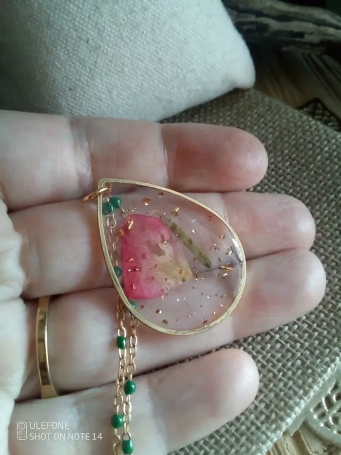 Collier bohème pétale de fleur rose naturel - photo numéro 1