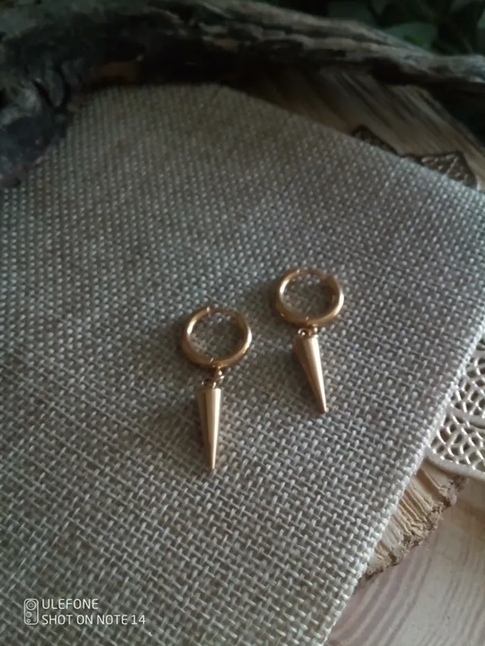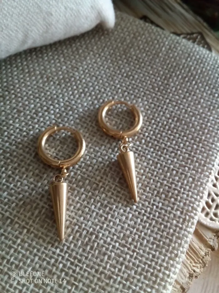 Boucles d'oreilles créoles piques dorés en acier inoxydable - photo numéro 2