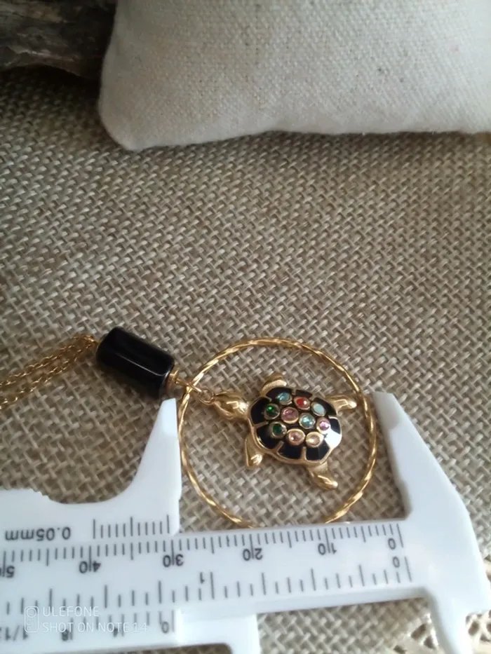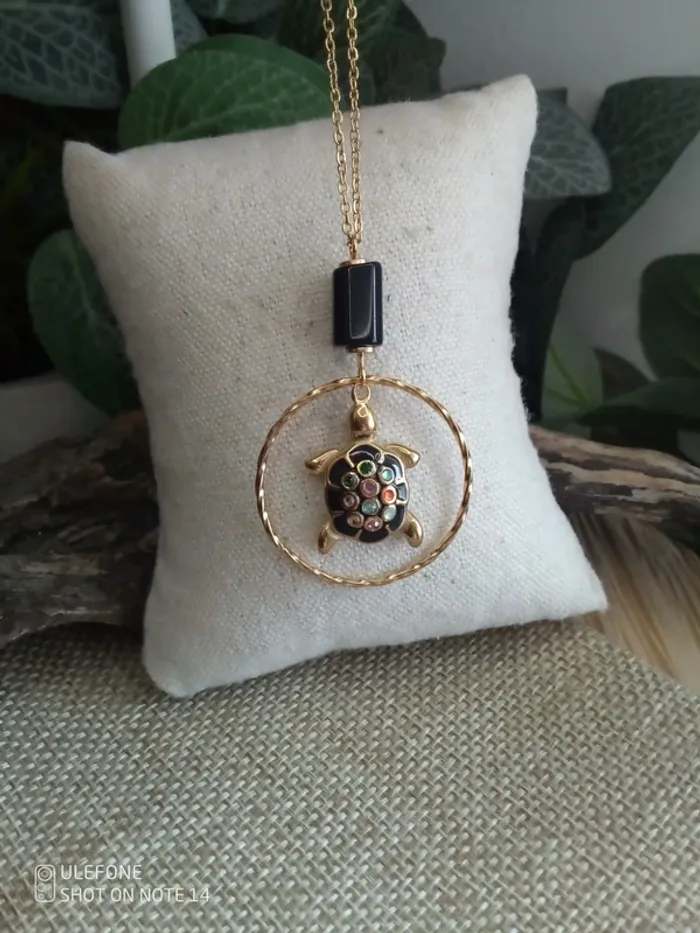 Collier tortue noire et pierre d'obsidienne naturelle - photo numéro 1