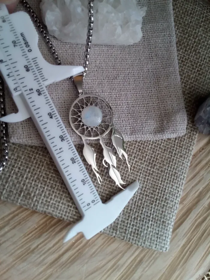 Collier attrape rêve en acier inoxydable argenté et pierre de lune naturelle - photo numéro 1
