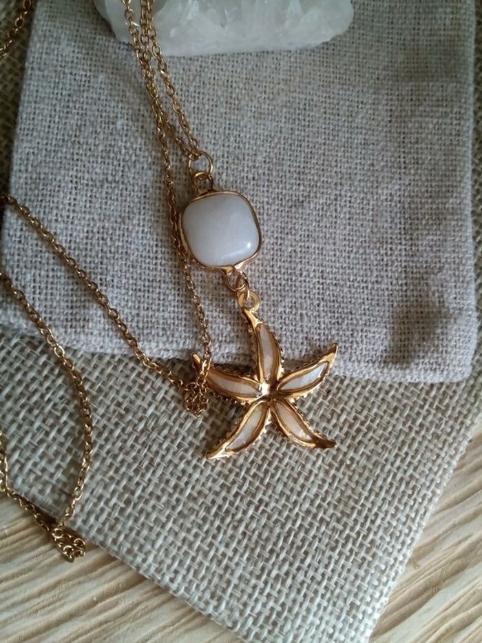 Collier étoile de mer nacrée et jade blanc - photo numéro 1