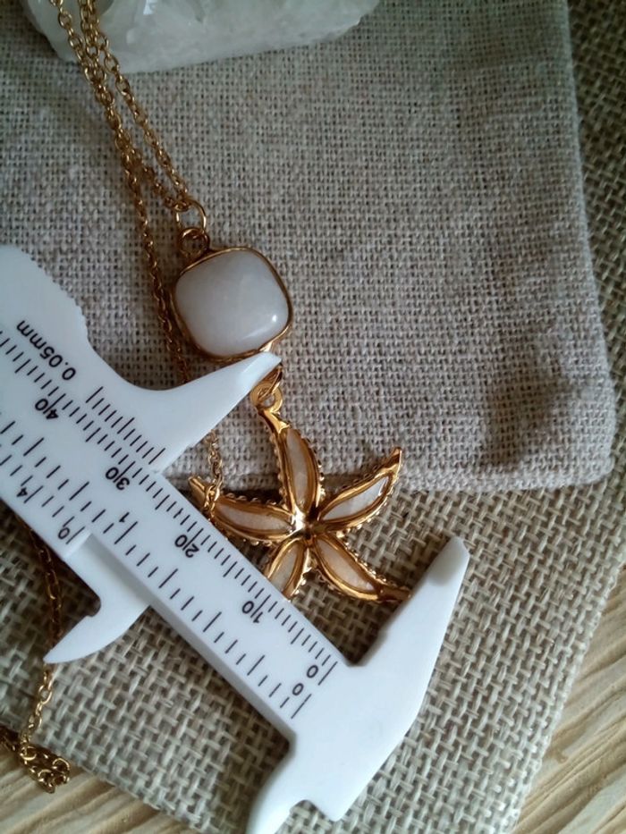 Collier étoile de mer nacrée et jade blanc - photo numéro 2