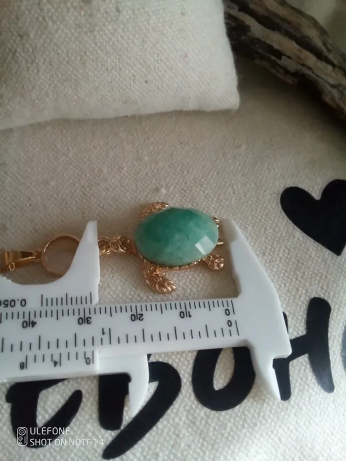 Collier long tortue en pierres d'amazonite et de nacre naturelles - photo numéro 2