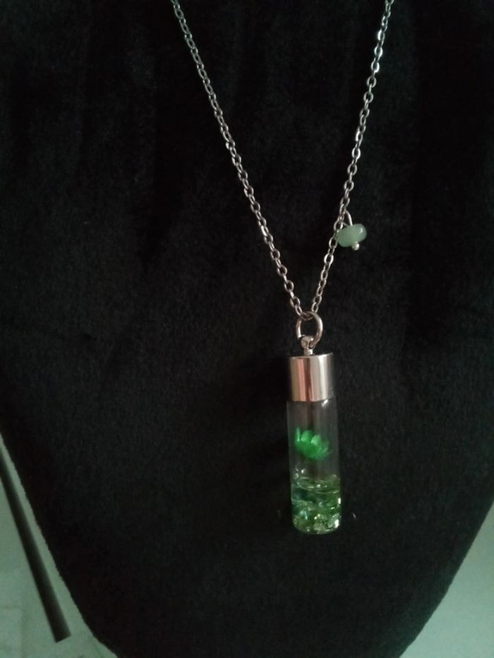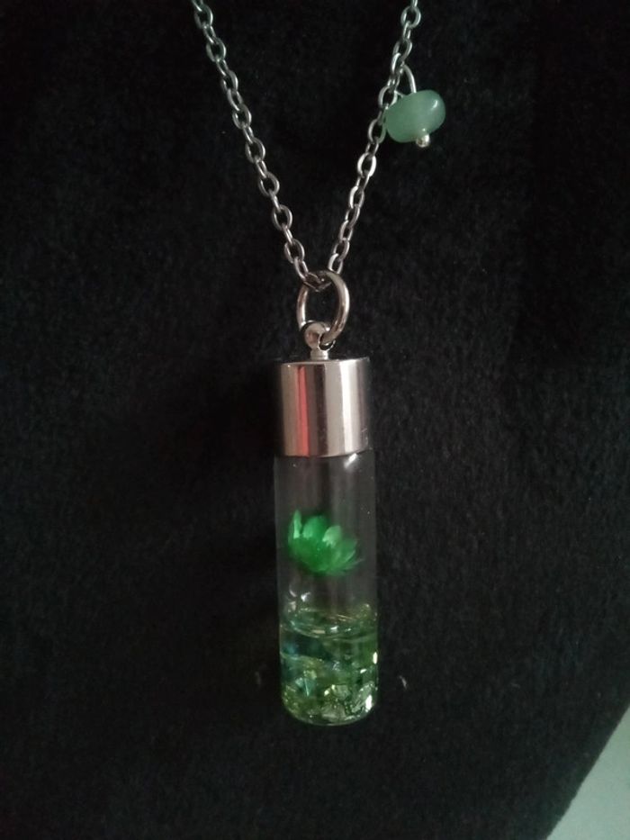 Collier pendentif fleur verte et pierre d'aventurine 💚.