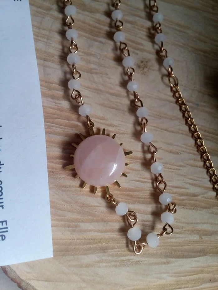 Bracelet double quartz rose et jade blanc - photo numéro 3