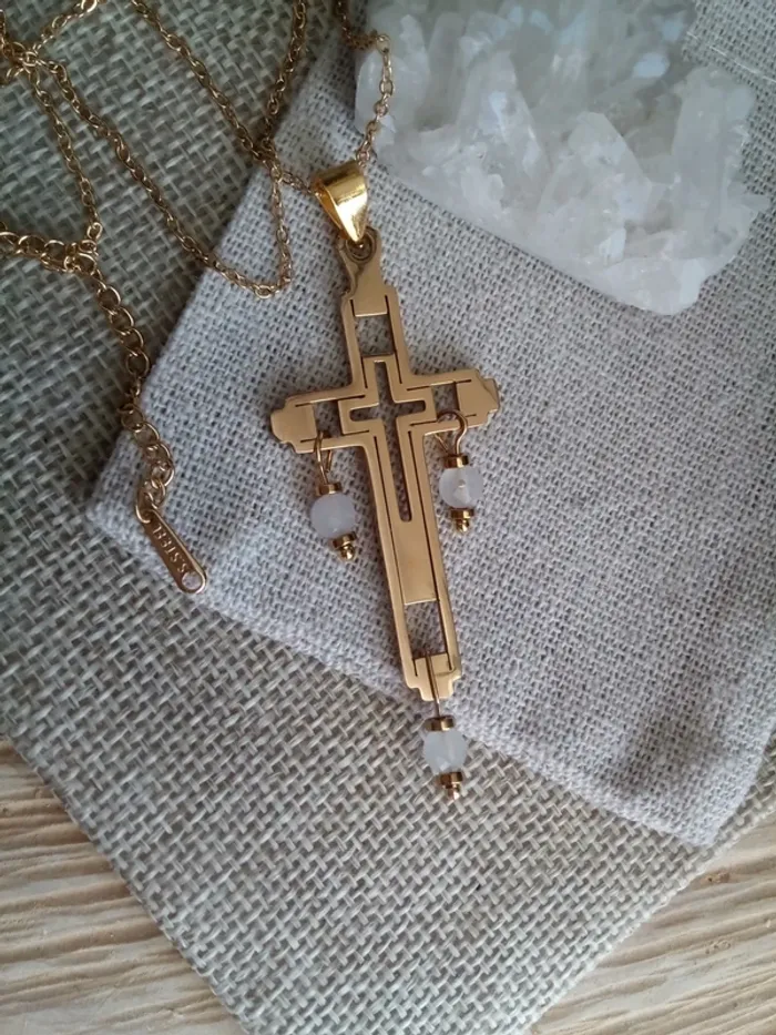 Collier croix d'Auvergne et pierre de cristal de roche - photo numéro 2