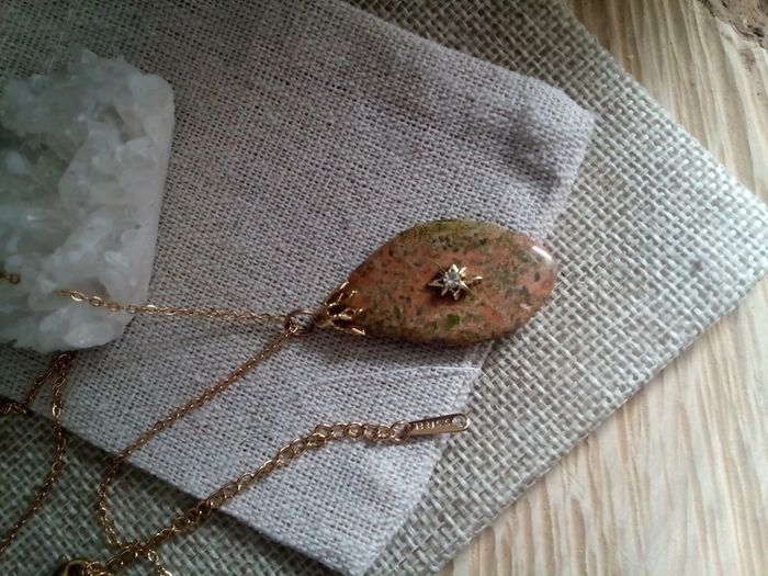 Collier pendentif en pierre d'unakite naturelle - photo numéro 1