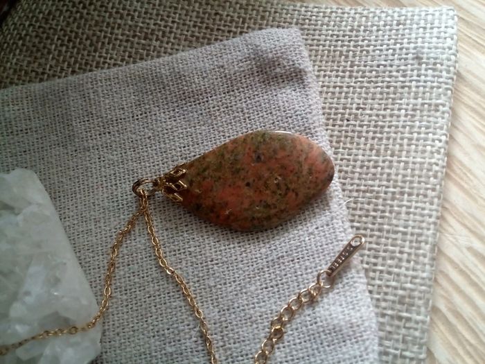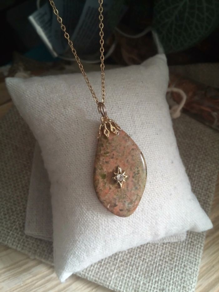 Collier pendentif en pierre d'unakite naturelle - photo numéro 2