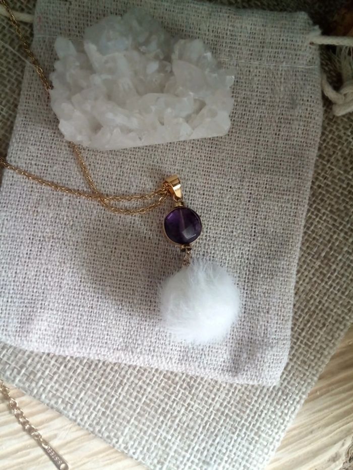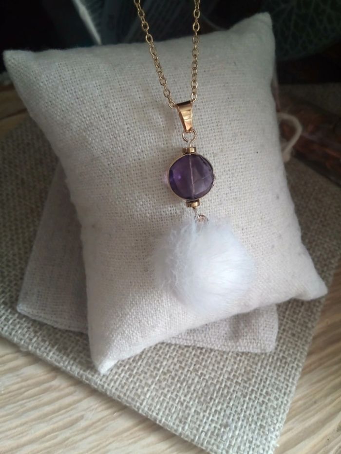 Collier boule douceur et pierre d'améthyste 💜 - photo numéro 1