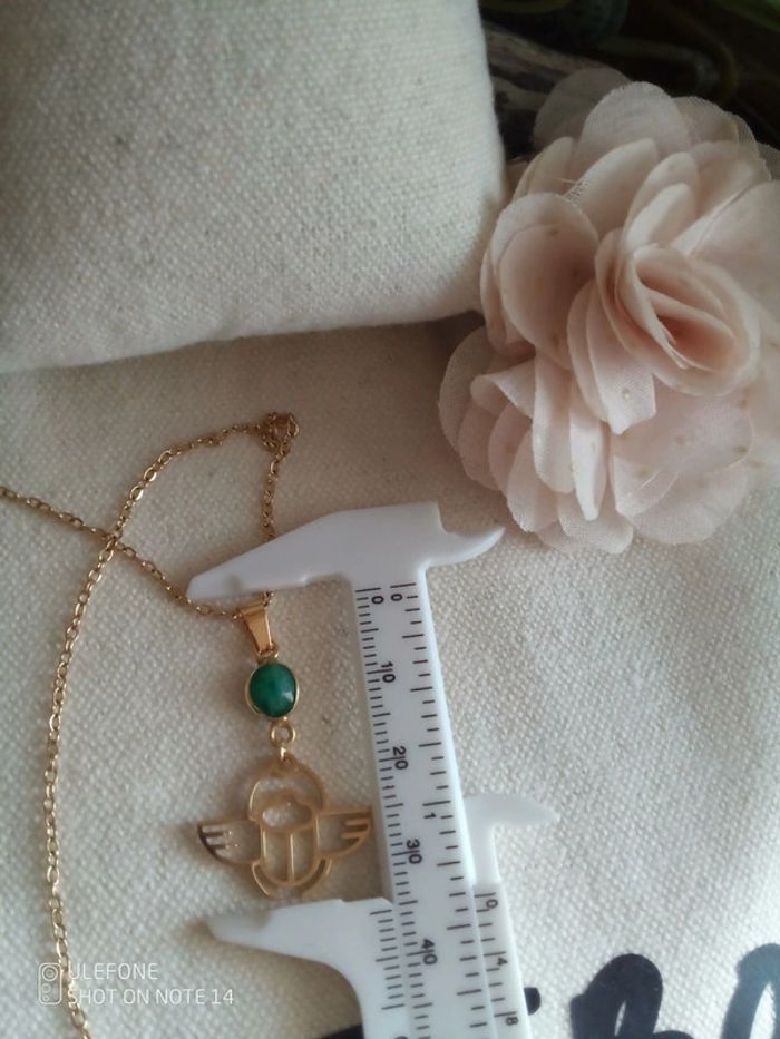 Collier pendentif scarabée et connecteur en véritable pierre naturelle d'émeraude brute sertie - photo numéro 3