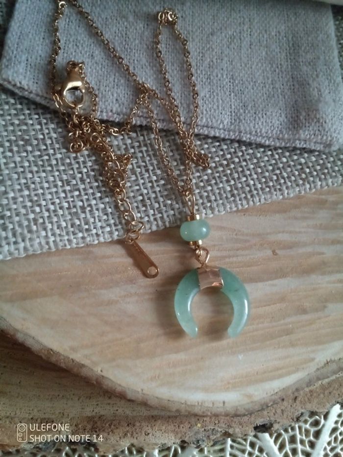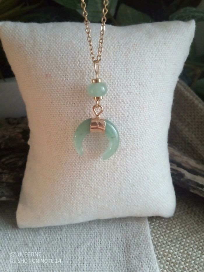 Collier demi lune en pierre naturelle d'aventurine verte 💚. - photo numéro 2