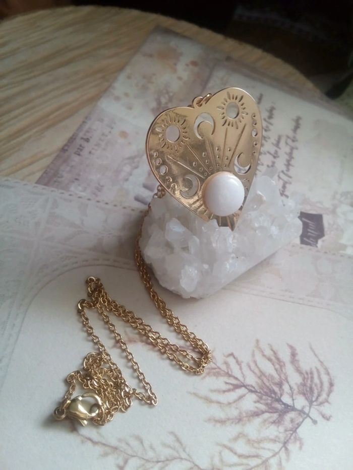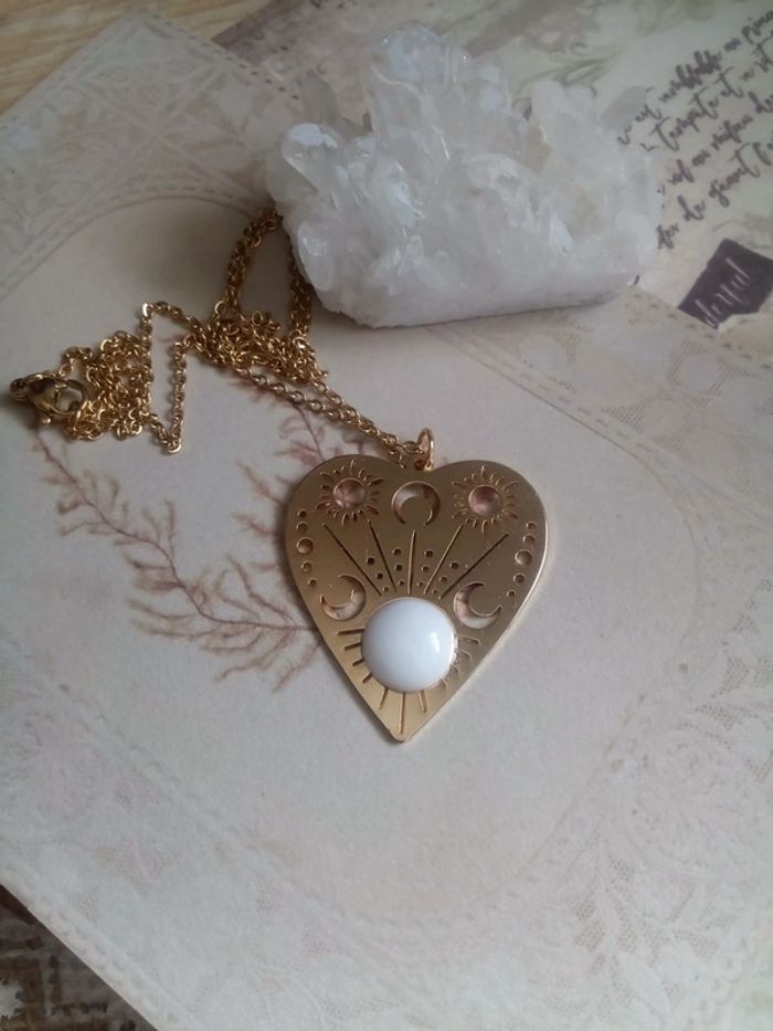 Collier cœur lune jade blanc pierre naturelle - photo numéro 1