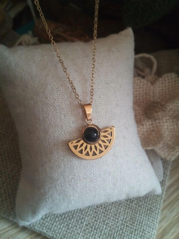 Collier style ethnique avec pierre naturelle d'obsidienne - photo numéro 2