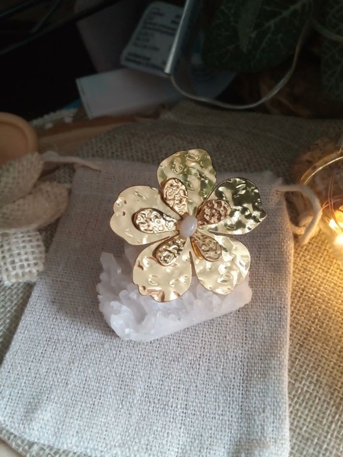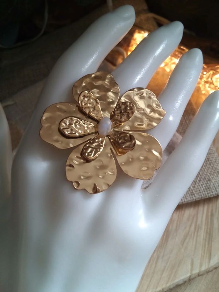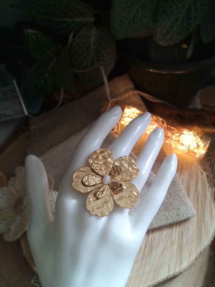 Bague bohème grosse fleur et pierre de lune - photo numéro 1