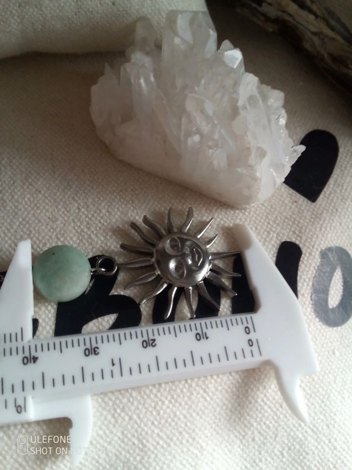 Collier pierre d'amazonite et soleil d'acier inoxydable argenté - photo numéro 1