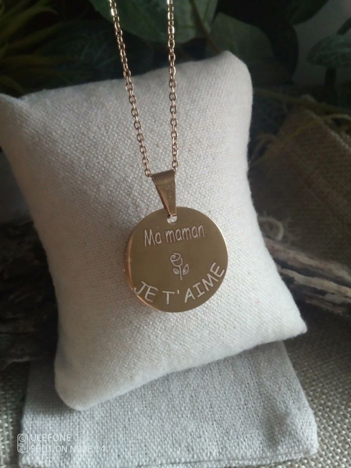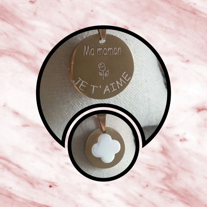 Collier maman je t'aime et trèfle à 4 feuilles en nacre naturelle - photo numéro 2