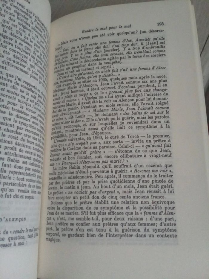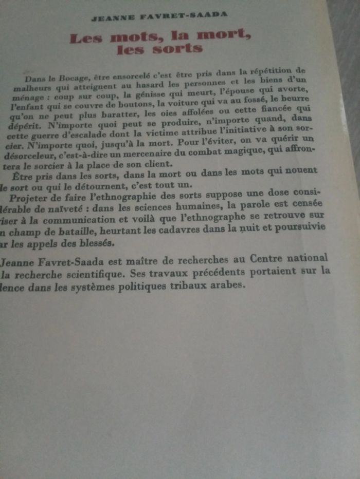 Jeanne favret Saada Livre vintage Bon état ethnographie sur la sorcellerie dans les campagnes françaises