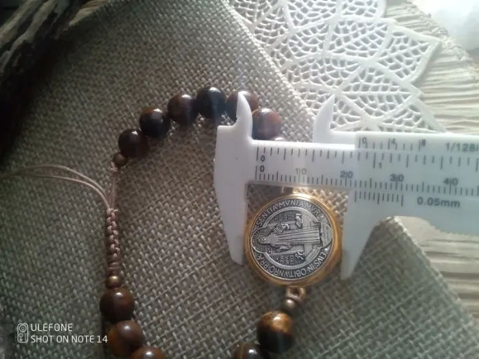 Bracelet de protection saint Benoît en pierres oeil de tigre - photo numéro 3