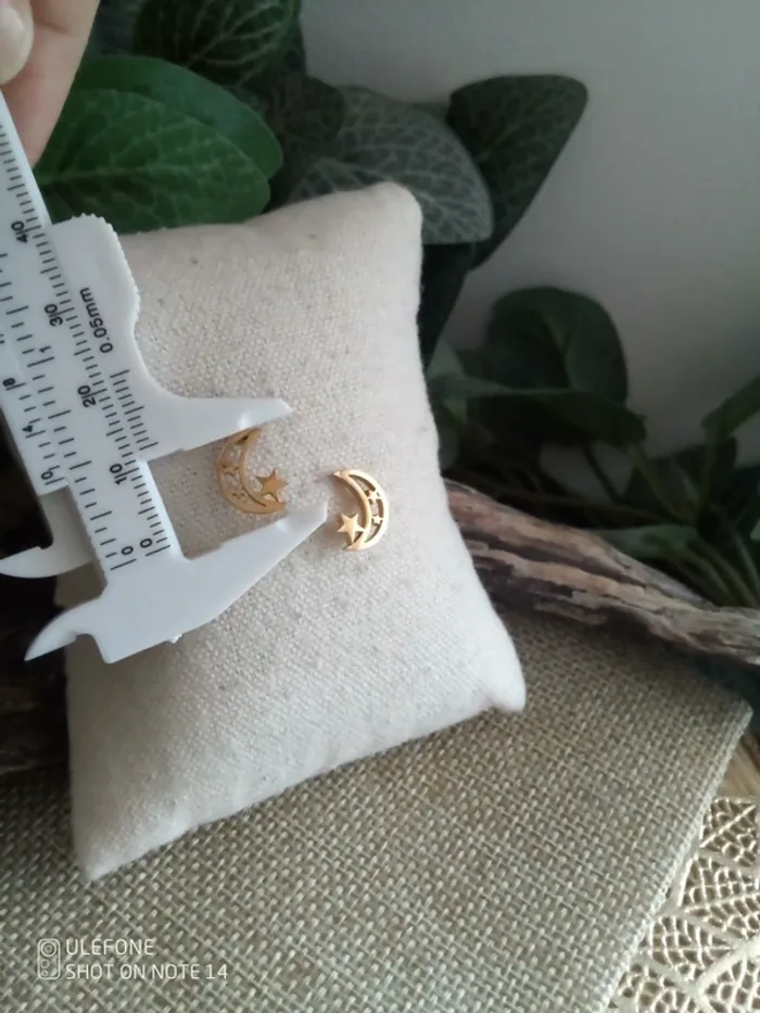Boucles d'oreilles lunes étoiles acier inoxydable doré - photo numéro 2