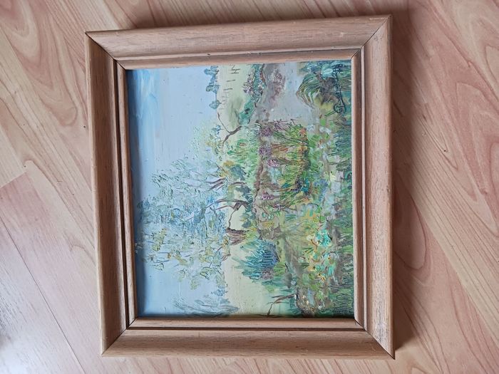 tableau cadre bois clair brut peinture à l'huile 36,5 x 33 cm