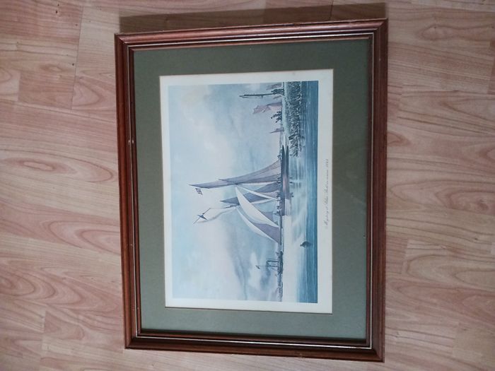 tableau cadre bois marron et doré Mystery et Blue Bell en course 1843 58,5 x 47,5 cm
